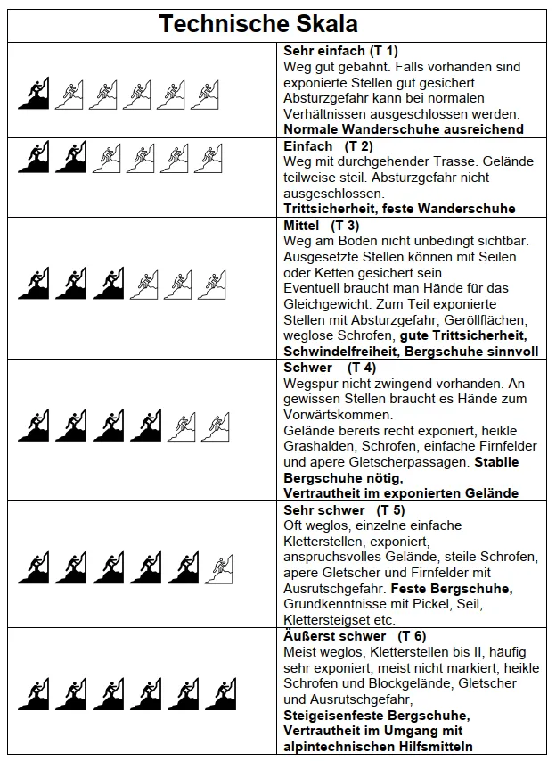 Neben der Klassifizierung der technischen Schwierigkeiten (SAC-Skala) ist hier